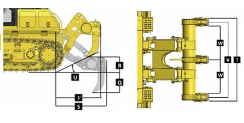 | Chiều rộng bao ngoài bộ xới (T) | 2158mm | Chiều cao nâng tối đa của lưỡi ủi (F) | 1210mm |